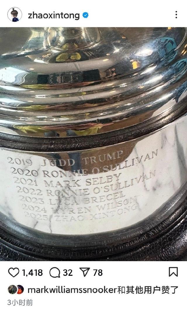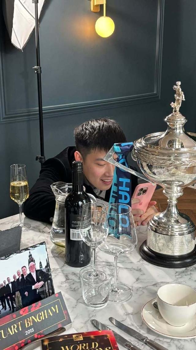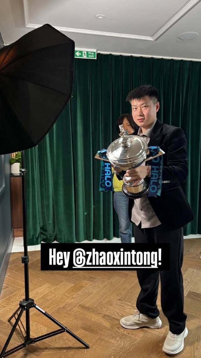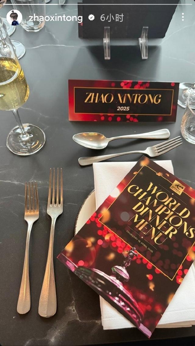 赵心童昨天首次参加世界冠军晚宴,世锦赛冠军奖杯上刻上了中国选手的名字。